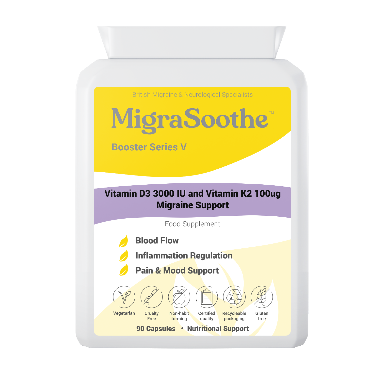 K2 may play a role in reducing the frequency and severity of migraines. Vitamin K2 MK7 is a form of vitamin K that is primarily found in fermented foods. Health benefits, include promoting bone and cardiovascular health. Studies suggest that vitamin K2 may have a protective effect on cardiovascular health, which could potentially be beneficial for migraine sufferers who experience migraines with aura, as aura may be a sign of changes in blood flow to the brain. 🍲